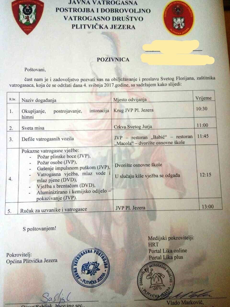 Pozivamo sve građane općine Plitvička Jezera da svojom nazočnošću svetoj misi i promatranjem izvođenja vježbe u dvorištu Osnovne škole dr. Franjo Tuđman u Korenici uveličaju ovaj događaj.
